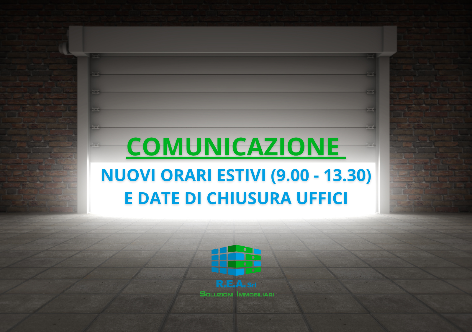 Ti informiamo che, a partire da lunedì 7 luglio 2025, gli uffici della R. E. A. srl osserveranno il seguente orario estivo: Apertura: dalle 9:00 alle 13:30; Chiusura pomeridiana: gli uffici resteranno chiusi nel pomeriggio, ma sarà possibile ricevere visite solo su appuntamento. Inoltre, i nostri uffici resteranno chiusi nelle giornate del: 14 agosto 2025 15 agosto 2025 Precisiamo che la chiusura riguarda solo gli uffici fisici. Tutti gli […]